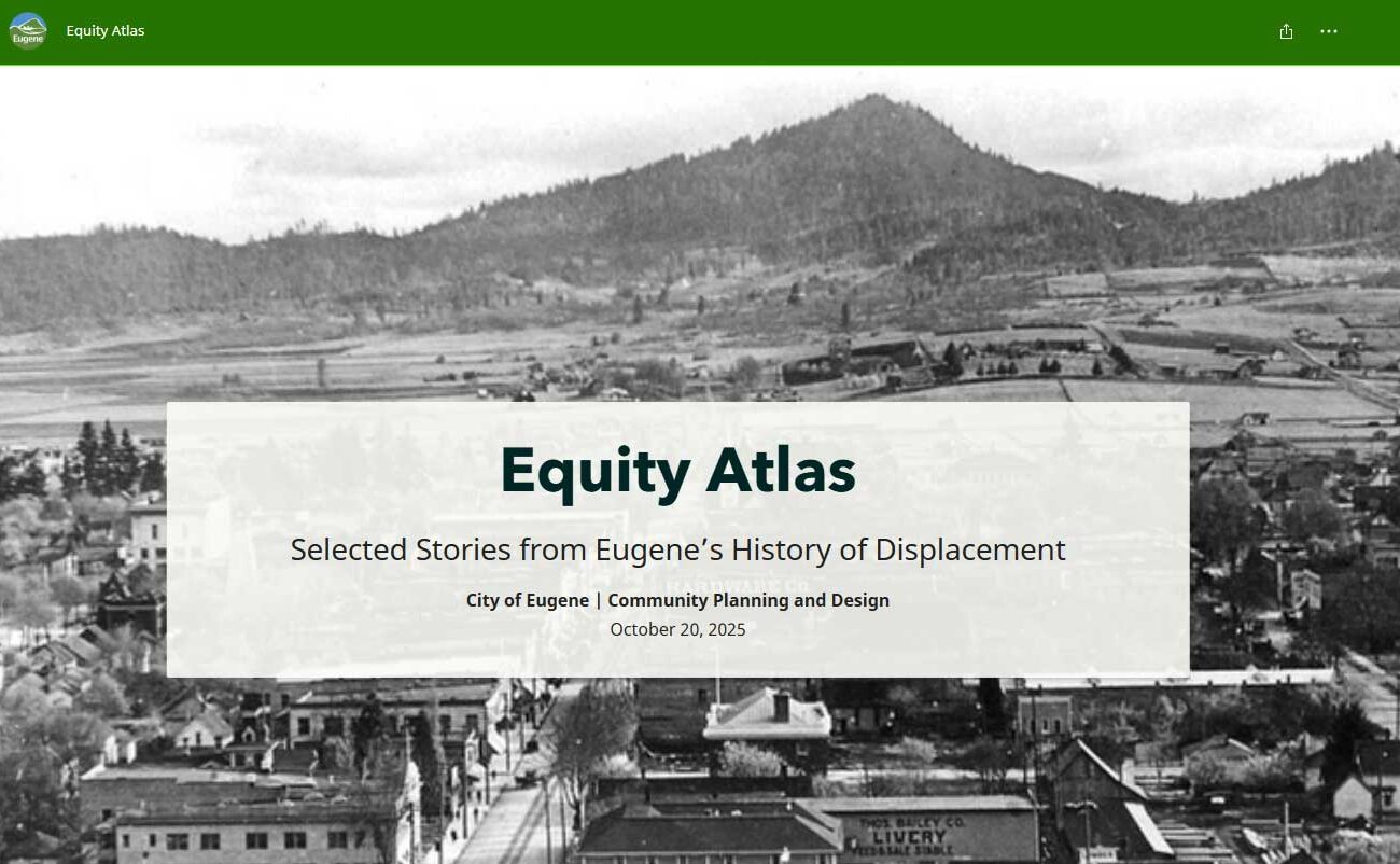 The Eugene Planning Division’s Urban Growth Strategies project formed the Equity Atlas, which has a story map drawing on selected stories of how state and federal legislation, exclusionary zoning and displacement have impacted Eugene’s marginalized communities over time. Historical research and community input also formed the timeline.