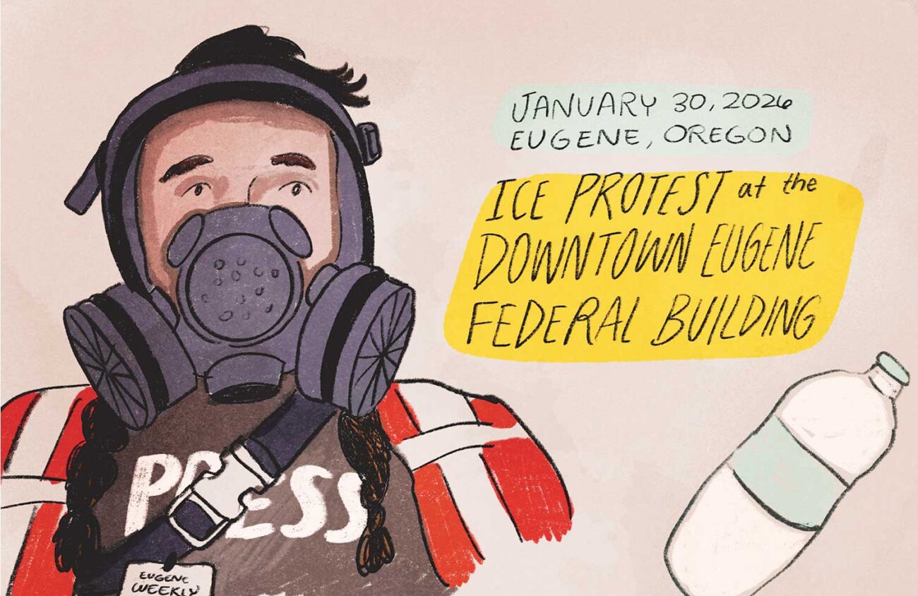 Protest Journal Illustrations and observations from the Jan. 30 protests at the downtown Eugene Federal Building News by McKenzie Young-RoyPosted on 02/05/2026 Click to share on Facebook (Opens in new window) Facebook Click to share on Bluesky (Opens in new window) Bluesky Click to share on Mastodon (Opens in new window) Mastodon Click to share on LinkedIn (Opens in new window) LinkedIn Click to email a link to a friend (Opens in new window) Email Click to print (Opens in new window) Print @mckenzieyoungart Related