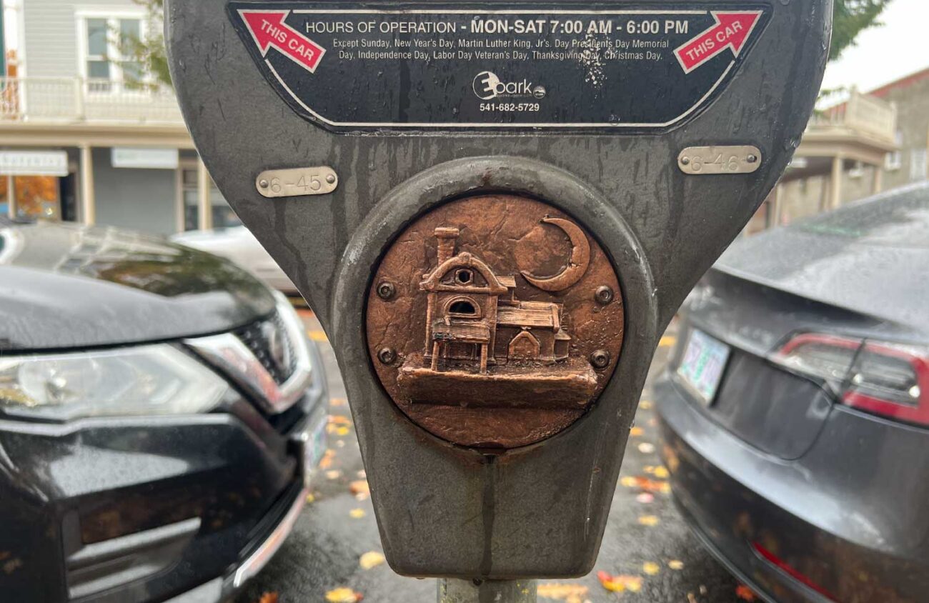 There’s a public art project happening in downtown Eugene, but with no press release or mayoral ribbon-cutting, you may not have noticed it. About a year ago, Eugene artist Robert Bolman turned the empty spaces left behind when the city removed the coin vaults from downtown parking meters into tiny art spaces. Inspired by Bolman, Eugene sculptor Jud Turner and several other local artists got involved and installed their own art on different meters. It’s now a successful art-as-direct-action, grassroots effort to beautify the city center.